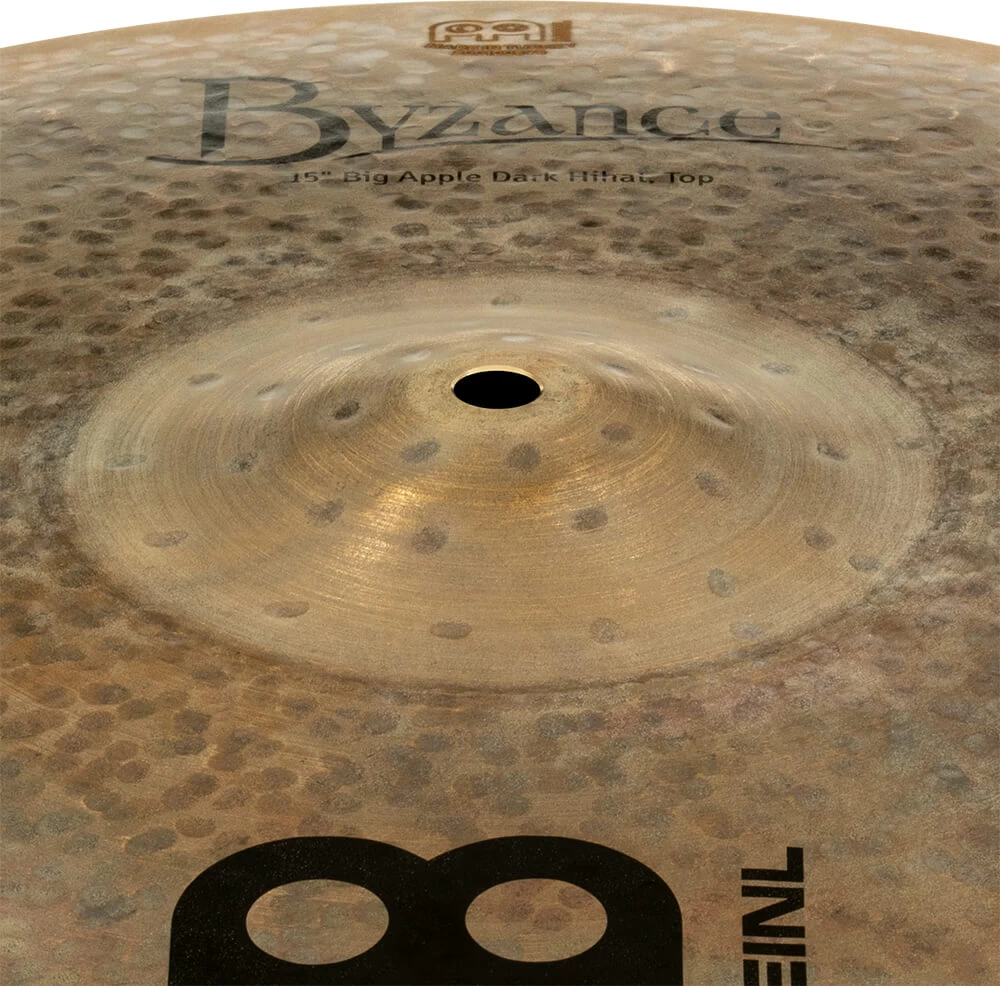 Die Big Apple Dark Hihat besitzt eine kleinere Glocke und ein dünneres Top und Bottom Becken als die anderen Hihats der Byzance Dark Serie. Durch diese einzigartige Kombination entsteht zusammen mit der nicht abgedrehten Oberfläche die warme, weiche Ansprache mit einem dunklen Klangcharakter.