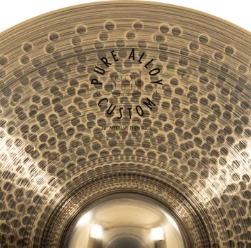 Das Pure Alloy Custom Ride besitzt eine Custom Smoked-Bronze Oberseite und eine Brilliant Unterseite und überzeugt besonders aufgrund seiner durchsetzungsstarken Bell. Die perfekte Balance zwischen definiertem Stick Attack und einem washy Grundton mit einem breiten Dynamikspektrum für eine große Soundvielfalt.