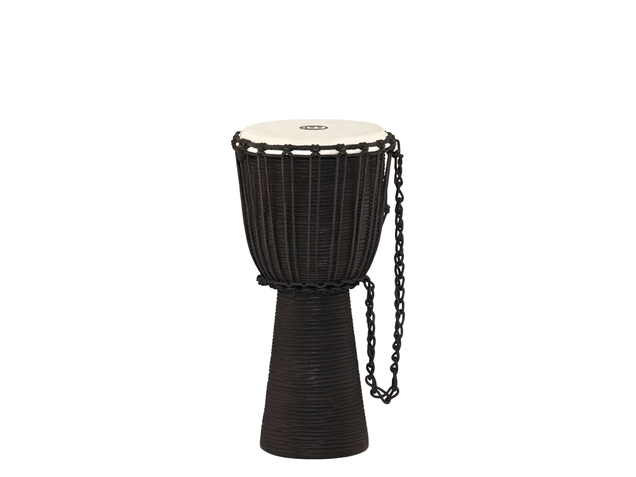 Die Meinl HDJ3 Djemben werden aus einem massiven Stück Plantagen-Mahagoni handgeschnitzt und haben ein horizontales Streifenmuster, das an einen Fluss erinnern soll. Diese Riffelung erleichtert zudem das Halten dieser Rope Tuned Headliner Serie Djemben zwischen den Knien.