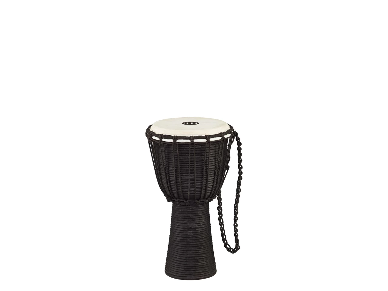 Die Meinl HDJ3 Djemben werden aus einem massiven Stück Plantagen-Mahagoni handgeschnitzt und haben ein horizontales Streifenmuster, das an einen Fluss erinnern soll. Diese Riffelung erleichtert zudem das Halten dieser Rope Tuned Headliner Serie Djemben zwischen den Knien.