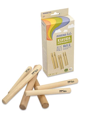 Zwei gleich lange Hölzer, durchdringender Klang, kein Nachhallen – das sind die Klanghölzer. Der Zauber dieser beiden Klangwunder liegt in ihrer Einfachheit. Kinder entdecken Rhythmik und üben erste Notenwerte. Tippen, Rollen, Klappern, Klopfen – wirklich alles ist erlaubt. Die hauchdünn und kindgerecht lackierten Claves fertigen wir aus regionalem Buchenholz und achten auf faire und ökologische Ressourcengewinnung. Das 3-er Set der Claves aus Buche erhält je ein Paar Klanghölzer mit 18, ein Paar mit 20 und ein Paar mit 25 Millimetern Durchmesser. Der Lack ist speichel- und schweißecht.