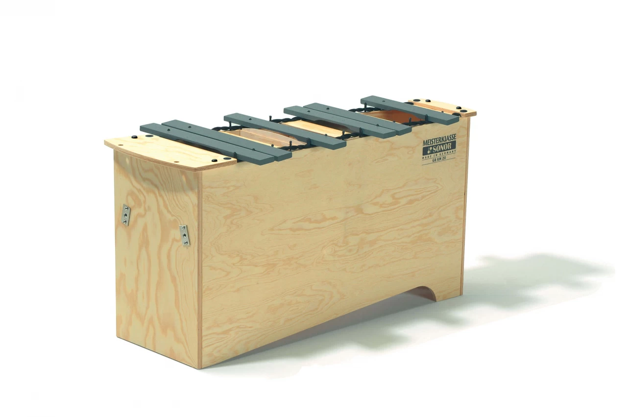 Die Metallophone der Meisterklasse Serie haben speziallegierte Metall-Klangplatten mit Oberton-Stimmung oder Grundton-Stimmung. Diese tragen zu einem besonders ausgewogenen und sanften Klangbild bei. Alle Resonanzkästen sind mit „Rastplatten“ ausgerüstet für Ständerbeine oder für das BasisTrolley Ständerwagen-System. Sie sind mit dem auf Schellack, Öl und Carnaubawachs basierenden ökologischen Oberflächenschutz „Proterra“ behandelt.