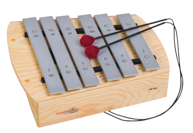 - fest montierte Klangplatten sowie am Instrument befestigte Schlägel sorgen für ein stets spielbereites Instrumente